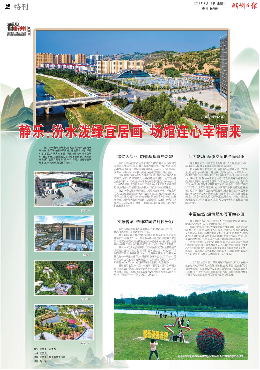 汾河如一條翠綠綢帶,在黃土高原的溝壑間蜿蜒流淌,溫柔環(huán)抱著靜樂縣城。這座晉北小城,深植山水之基,揮灑人文濃墨,正全力繪就一幅特色鮮明、魅力彰顯、品質(zhì)卓越的幸福城市新畫卷?!皣覉@林縣城”“全國文明城市”的殊榮,正是其踐行新發(fā)展理念、實現(xiàn)美麗蝶變的光輝見證。