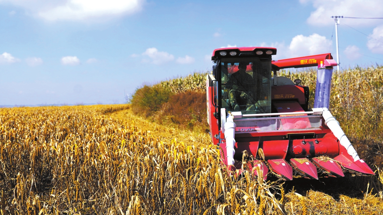 圖為水泉鎮(zhèn)農(nóng)作物搶收現(xiàn)場(chǎng)。