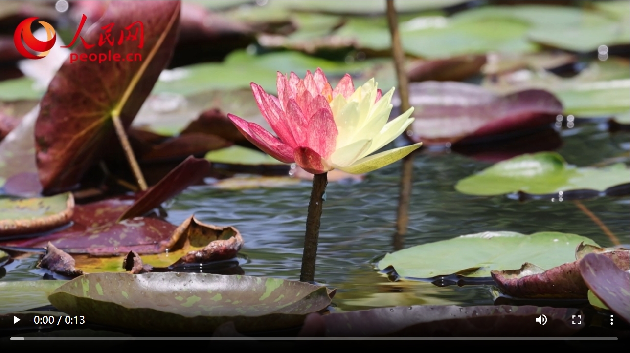 雙色睡蓮與翠綠的蓮葉、清澈的池水相映成畫。人民網(wǎng)記者 陳博攝