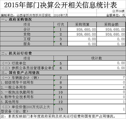 忻州日報社2015年度部門決算