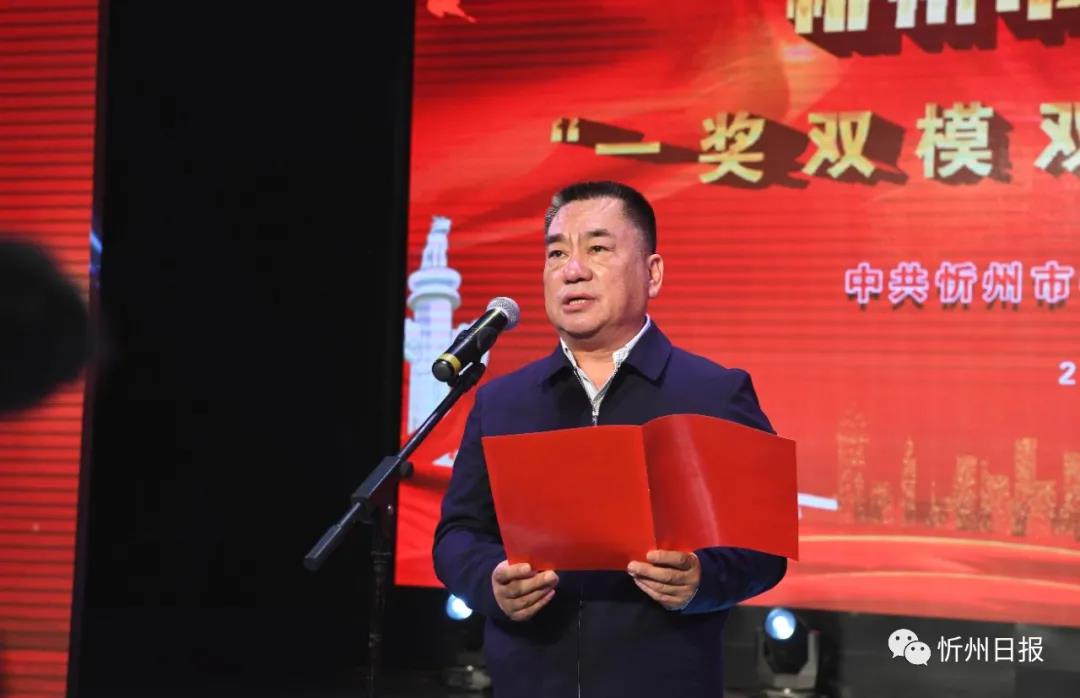 秦書(shū)義宣讀《中共忻州市委忻州市人民政府〈關(guān)于表彰2020年忻州市脫貧攻堅(jiān)“一獎(jiǎng)雙模雙先”的決定〉》。劉紀(jì)森攝