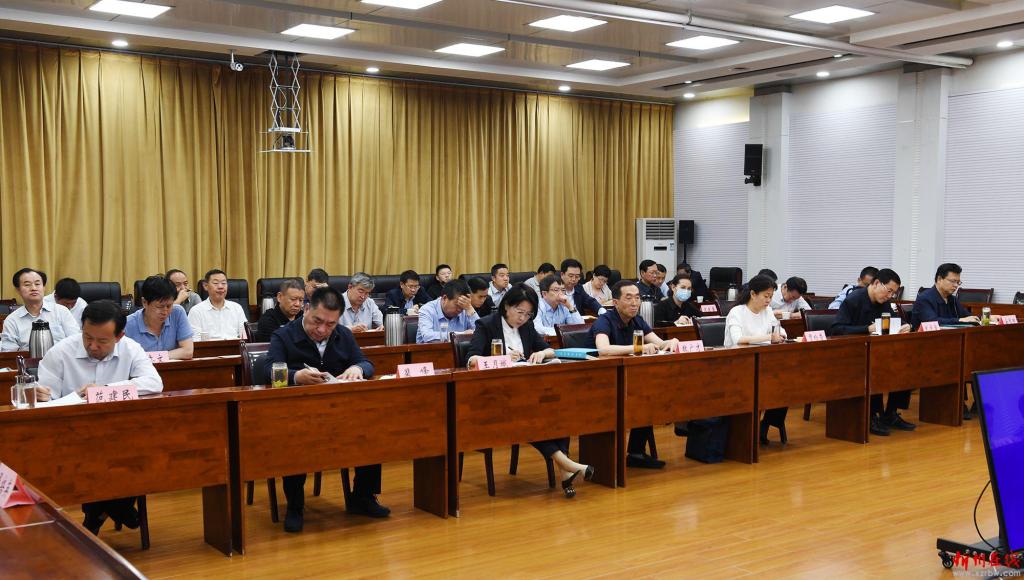 市委專(zhuān)題會(huì)議暨市疫情防控工作領(lǐng)導(dǎo)小組第四十六次會(huì)議會(huì)場(chǎng)。記者 劉紀(jì)森 攝