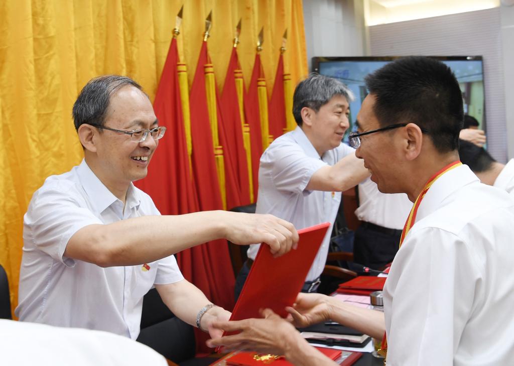 鄭連生為受表彰的優(yōu)秀個人和先進集體代表頒獎。劉紀(jì)森 攝