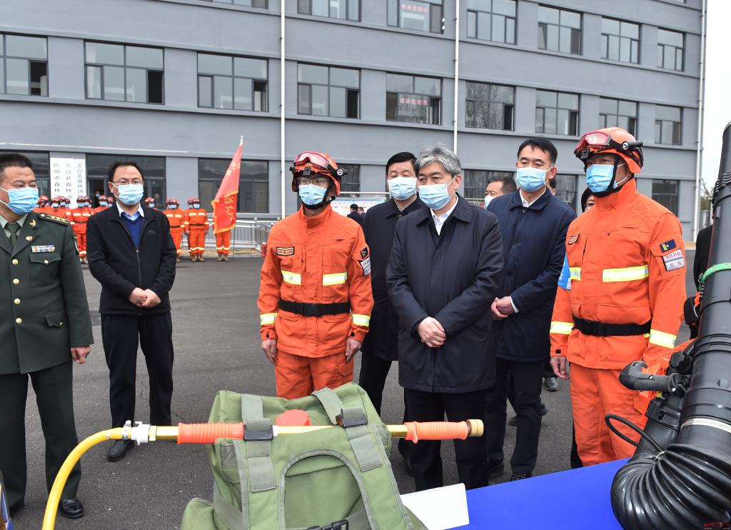 當(dāng)前已經(jīng)進(jìn)入森林防火特險(xiǎn)期,在內(nèi)蒙古森林消防總隊(duì)指戰(zhàn)員駐防五臺(tái)縣東雷鄉(xiāng)應(yīng)急救援訓(xùn)練基地,朱曉東專(zhuān)程慰問(wèn)指戰(zhàn)員并檢查應(yīng)急物資儲(chǔ)備情況。他希望森防總隊(duì)保持高度臨戰(zhàn)狀態(tài),發(fā)揮專(zhuān)業(yè)護(hù)林滅火優(yōu)勢(shì),持續(xù)強(qiáng)化應(yīng)急演練,結(jié)合五臺(tái)地形氣候?qū)嶋H,以實(shí)戰(zhàn)化演練為導(dǎo)向,完善應(yīng)急預(yù)案,練就過(guò)硬本領(lǐng);同時(shí)要發(fā)揮所長(zhǎng),把好經(jīng)驗(yàn)好辦法傳授給地方應(yīng)急隊(duì)伍,幫助地方打造有生力量。市縣相關(guān)部門(mén)要全方位服務(wù)保障到位、學(xué)習(xí)借鑒到位,通力合作堅(jiān)決打贏護(hù)林防火攻堅(jiān)戰(zhàn)。在定襄縣林業(yè)局聽(tīng)取森林防火預(yù)警監(jiān)控系統(tǒng)運(yùn)行情況后,朱曉東指出,護(hù)林防火重在防,要堅(jiān)持人防加技防,把人員力量布設(shè)到位,切實(shí)把好入山進(jìn)林關(guān)卡,強(qiáng)化檢查督導(dǎo),堅(jiān)決禁止火源上山,確保實(shí)現(xiàn)火險(xiǎn)火情“打早打小打了”。