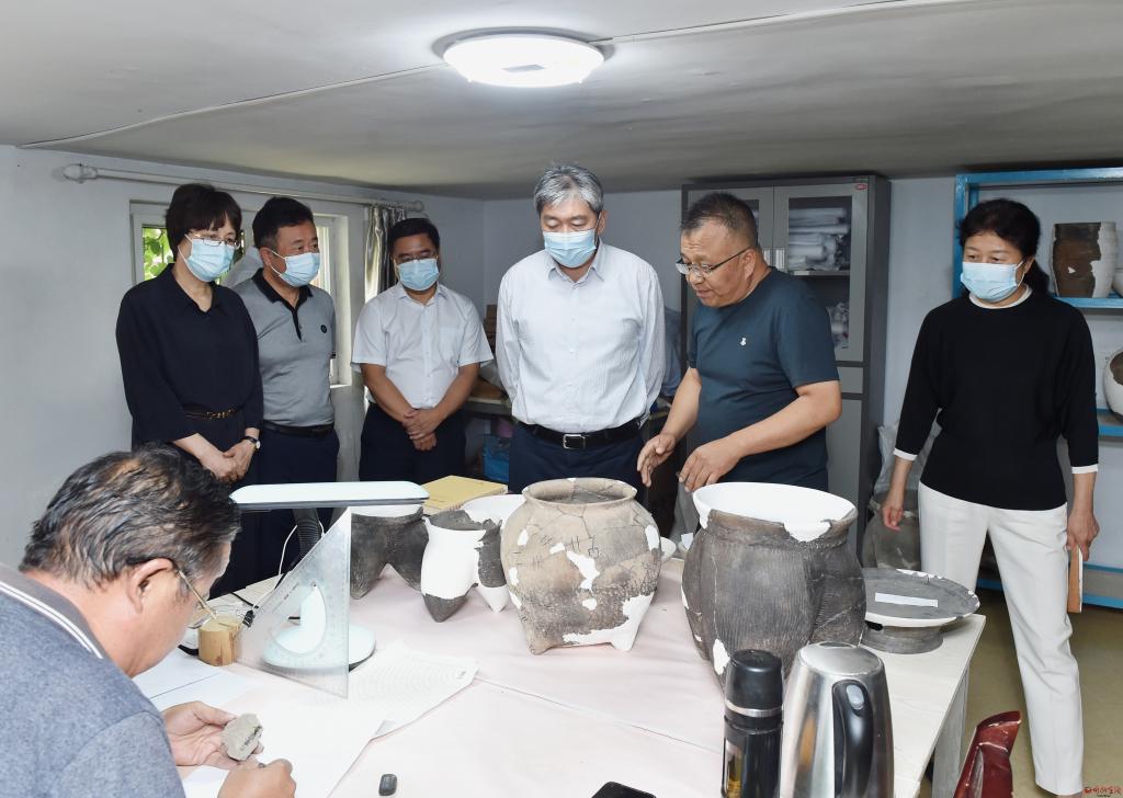 朱曉東一行先后深入忻府區(qū)北城門樓、市文物考古研究所、市博物館、忻口戰(zhàn)役遺址等處,詳細(xì)了解我市省級(jí)文物保護(hù)單位文物保護(hù)修繕工程進(jìn)展、全市文物保護(hù)工作及考古研究成果、文物陳列布展、全國重點(diǎn)文物保護(hù)單位文物保護(hù)等情況,對(duì)做好文物保護(hù)管理研究、文化遺產(chǎn)宣傳利用、加強(qiáng)博物館建設(shè)、注重專業(yè)人才培養(yǎng)等工作提出指導(dǎo)意見。