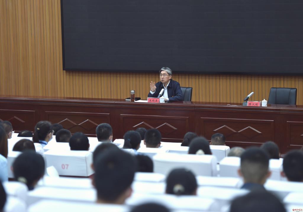 朱曉東圍繞知古鑒今立大志、讀書明理識春秋、少年心事當拏云、崇德向善行得正、薪火相傳廣燎原、厚植情懷立新功六個方面,緊密結合歷史和現(xiàn)實,緊扣國際、國內局勢和我省、我市發(fā)展形勢,以典型生動的事例和深入淺出的講解引導青年學子自覺肩負起時代責任和歷史使命,努力在新征程上奮勇爭先、建功立業(yè)。他說,透過人類發(fā)展史、中華民族文明史,特別是中國共產(chǎn)黨的百年奮斗歷史,深刻認識到青年的命運從來都同時代緊密相連,青年始終在人類進步、國家富強、民族復興、人民幸福的征程中扮演著排頭兵的角色。人類社會進步,離不開青年的引領。救亡圖存時代,離不開青年的覺醒。革命戰(zhàn)爭年代,離不開青年的犧牲。和平建設時期,離不開青年的開拓。進入中國特色社會主義新時代,更離不開青年的拼搏奮斗。忻中學子要形成正確的讀書觀,常思“為何讀書”“讀什么書”“怎樣讀書”“怎樣用書”“如何拓展”,進一步積累知識、打開格局和拓寬眼界。要葆有一股韌勁、一股朝氣,對想做愛做的事敢試敢為,敢于做先鋒,不做過客,不當看客,不貪圖安逸,不懼怕困難,不怨天尤人,為青春搏擊,為國家出力,為人民奉獻。要久久為功錘煉道德、培養(yǎng)情操,始終牢記“人生的扣子從一開始就要扣好”,始終牢記“飲水思源,懂得回報”,始終牢記“崇尚科學,追求真理”。要傳承好忻中人的紅色基因、追求卓越、赤子之心,接好前人的“精神火把”,用奮斗之光照亮后來之人。