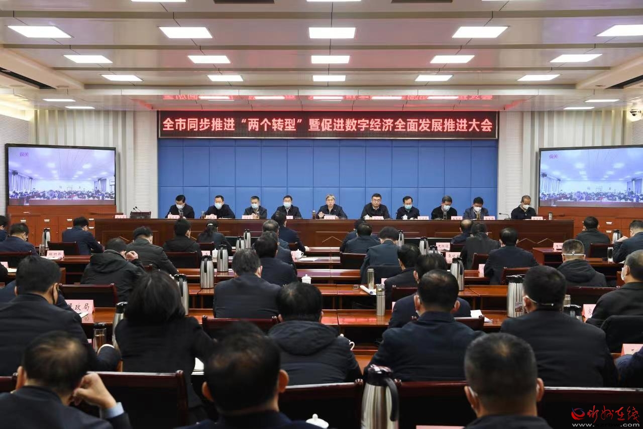 12月9日,全市同步推進(jìn)“兩個(gè)轉(zhuǎn)型”暨促進(jìn)數(shù)字經(jīng)濟(jì)全面發(fā)展大會(huì)召開。市委書記朱曉東出席會(huì)議并講話。市委副書記、市長(zhǎng)李建國(guó)主持會(huì)議并講話,市人大常委會(huì)主任王珍,市政協(xié)主席范建民,市領(lǐng)導(dǎo)劉卓良、趙新年、張文偉、溫建軍、張宇光等出席。