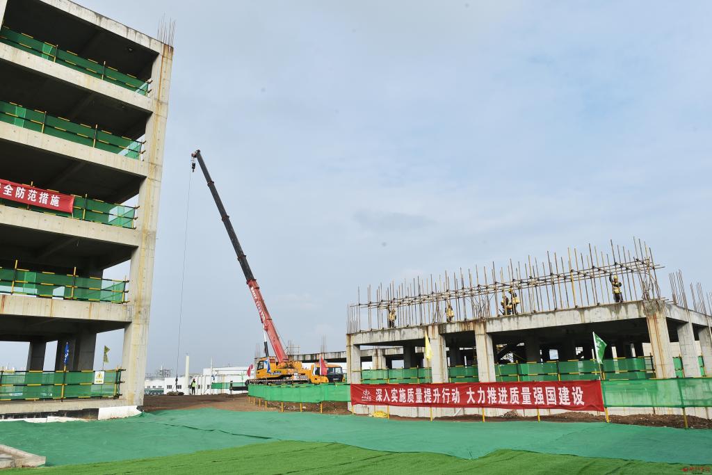 在電子信息裝備產(chǎn)業(yè)園觀摩檢查標準化廠房項目(二期)建設情況。馮曉磊攝