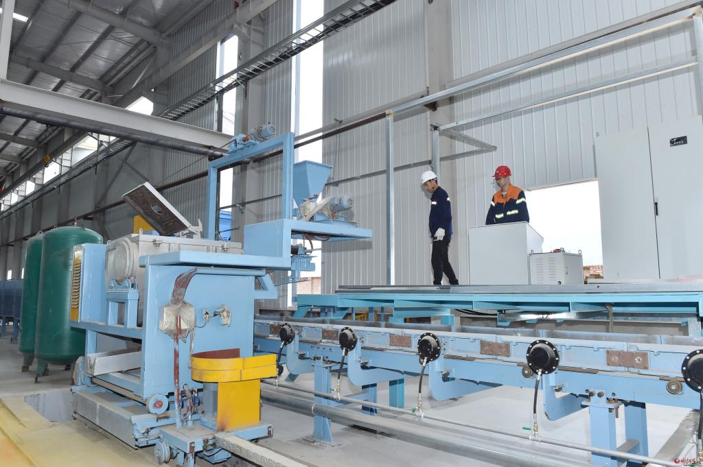 在山西榮安智能體育制造有限公司觀摩檢查年產(chǎn)10萬噸杠啞鈴體育用品及精密鑄件配套150萬件杠啞鈴項目建設情況。馮曉磊攝