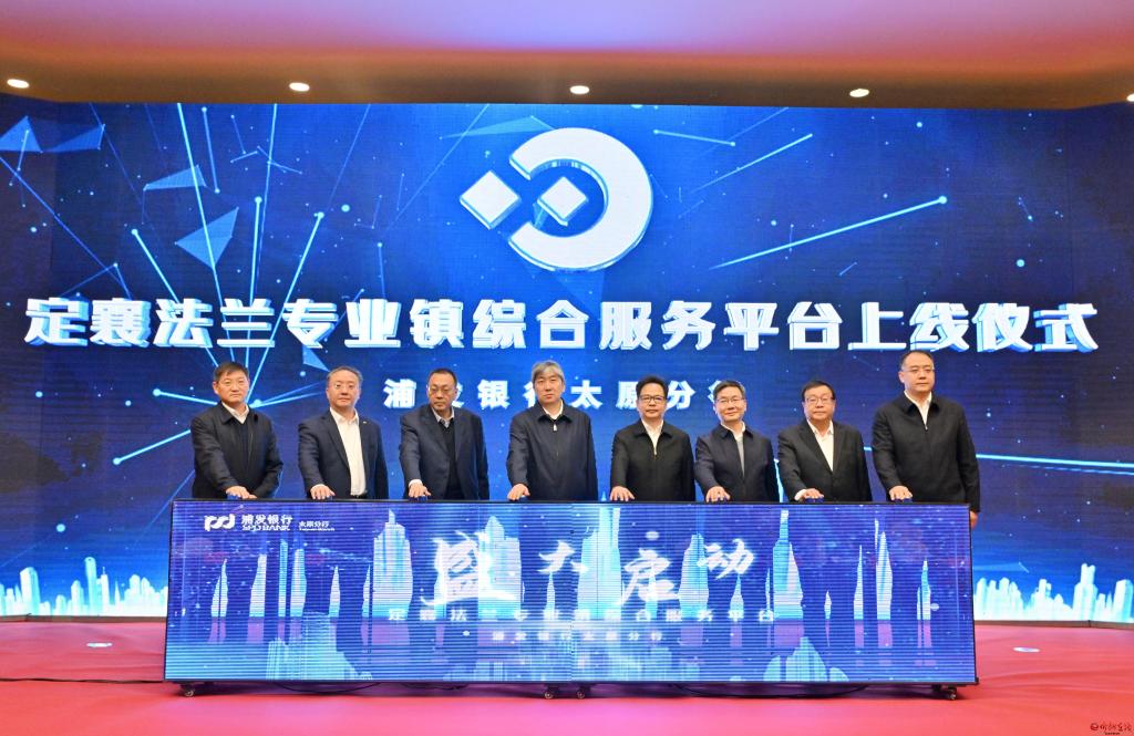 定襄·浦發(fā)銀行太原分行“法蘭專業(yè)鎮(zhèn)金融綜合服務(wù)平臺(tái)”上線儀式現(xiàn)場(chǎng)。馮曉磊 攝