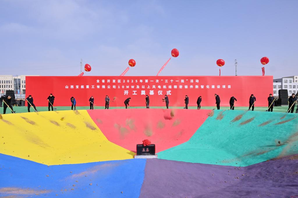 全省開(kāi)發(fā)區(qū)2025年第一次“三個(gè)一批”活動(dòng)山西寶航重工有限公司10MW及以上風(fēng)電機(jī)組精密鍛件數(shù)智化建設(shè)項(xiàng)目開(kāi)工奠基儀式現(xiàn)場(chǎng)。馮曉磊 攝