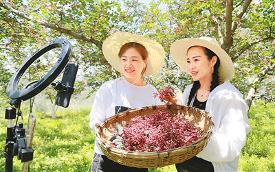 今年,甘肅省隴南市武都區(qū)的百萬(wàn)畝花椒喜獲豐收,隴南市相關(guān)部門及時(shí)組織本土電商人才深入田間地頭,通過電商平臺(tái)和直播帶貨方式助農(nóng)銷售。圖為日前,網(wǎng)絡(luò)主播在武都區(qū)郭河鄉(xiāng)候家彎村利用智能手機(jī)直播推介花椒。李旭春攝(人民視覺)