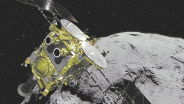 日本宇宙航空研究開發(fā)機構(gòu)的小行星探測器“隼鳥2號”接近其目標(biāo)小行星“龍宮”。圖片來源:日本宇宙航空研究開發(fā)機構(gòu)