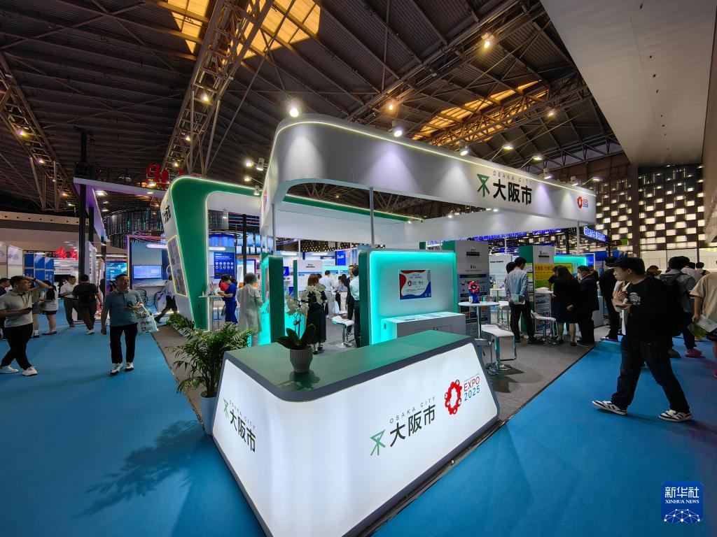 上交會上,觀眾正在參觀境外主賓城大阪帶來的技術(shù)。新華社記者周蕊 攝