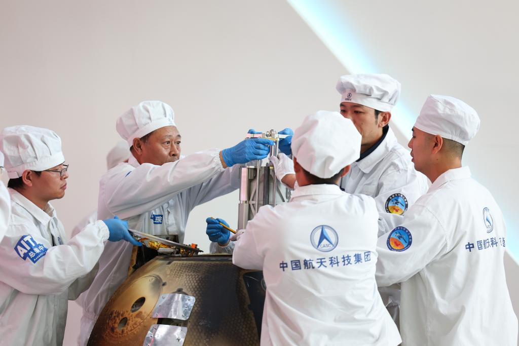 6月26日下午,科研人員對(duì)嫦娥六號(hào)返回器進(jìn)行開艙,檢驗(yàn)關(guān)鍵技術(shù)指標(biāo)完成情況。新華社記者 金立旺 攝