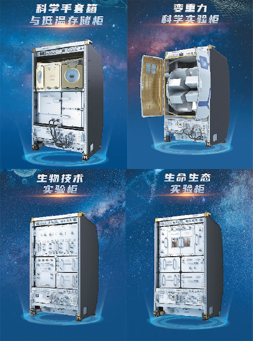除了無容器材料實驗柜之外,天和核心艙內(nèi)還有高微重力實驗柜,為航天醫(yī)學分析、基礎(chǔ)物理研究等提供理想的微重力實驗環(huán)境。問天實驗艙部署了生命生態(tài)實驗柜、生物技術(shù)實驗柜、科學手套箱與低溫存儲柜、變重力科學實驗柜以及艙外暴露實驗裝置等科學實驗設(shè)施。夢天實驗艙則配置了13個標準載荷機柜,目前已裝載了超冷原子物理實驗柜、高精度時頻實驗柜、高溫材料科學實驗柜、兩相系統(tǒng)實驗柜、流體物理實驗柜、燃燒科學實驗柜等實驗“神器”,主要面向微重力科學研究。