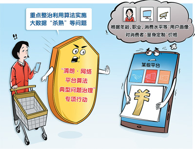 不久前,中央網信辦等四部門聯合發(fā)布開展“清朗·網絡平臺算法典型問題治理”專項行動通知,明確提出嚴禁利用算法實施大數據“殺熟”。嚴禁利用用戶年齡、職業(yè)、消費水平等特征,對相同商品實施差異化定價行為。