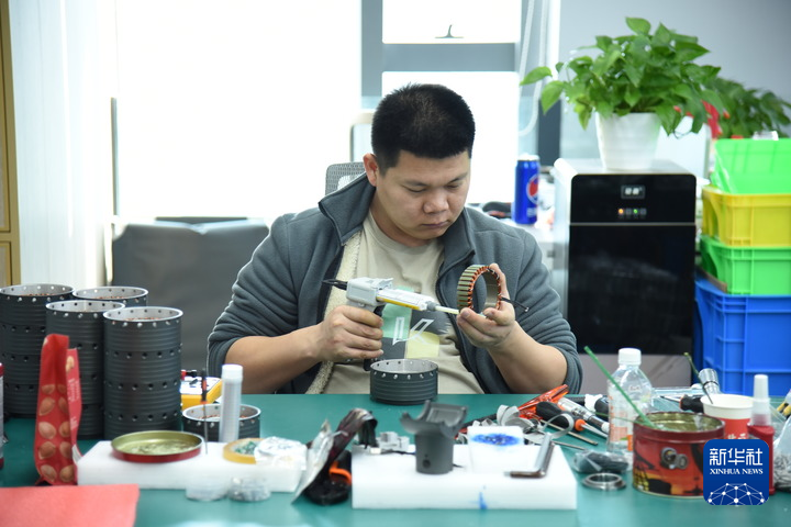 在深圳市眾擎機器人科技有限公司,一位工作人員正調(diào)試人形機器人部件(1月21日攝)。新華社記者洪澤華攝