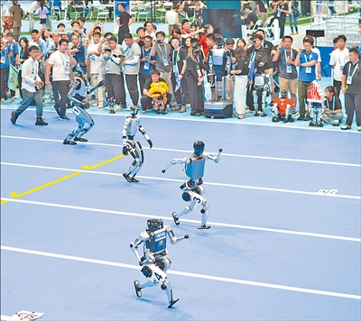 圖為機(jī)器人在開(kāi)幕式上開(kāi)展100米賽跑。新華社記者 謝 晗攝