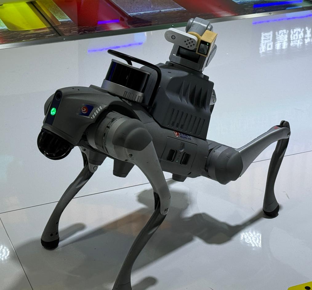 在2025年中國國際服務(wù)貿(mào)易交易會現(xiàn)場,燃氣巡檢智能機器狗在進行展示。新華社記者 田晨旭 攝