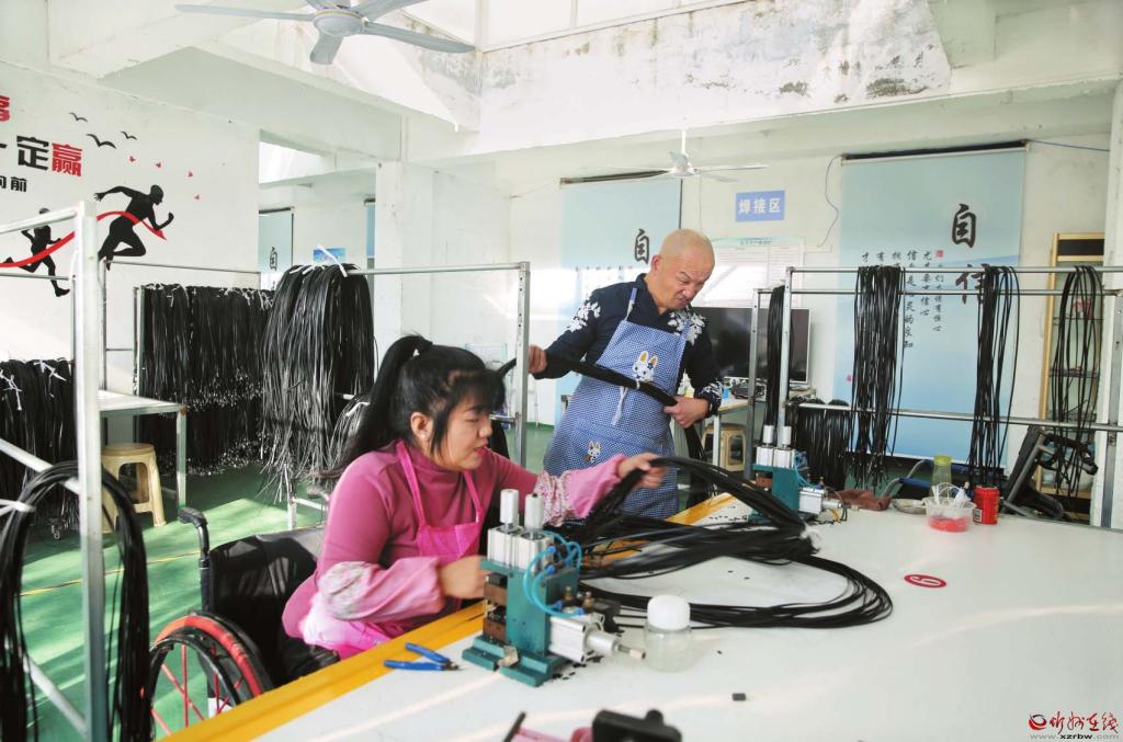 李國(guó)飛夫妻在線束加工幫扶車間忙碌