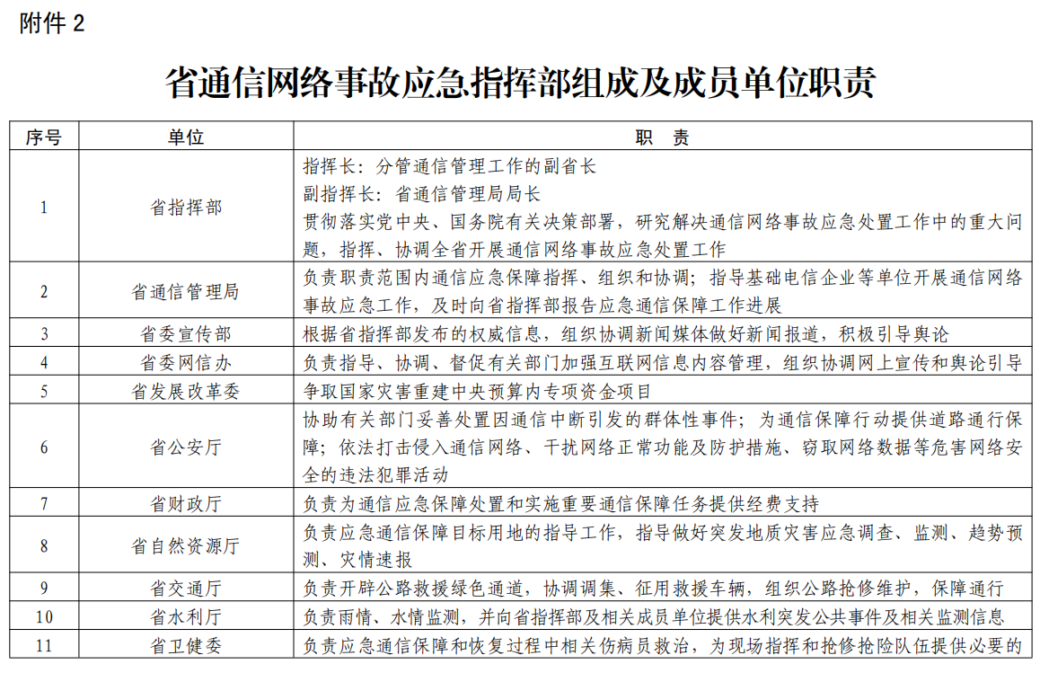2.省通信網(wǎng)絡(luò)事故應(yīng)急指揮部成員單位職責(zé)