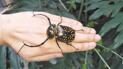 “這種甲蟲的發(fā)現(xiàn)地都是生態(tài)環(huán)境很好的茂密叢林,它的出現(xiàn)可以看做是自然環(huán)境保護(hù)得當(dāng)?shù)囊粋€(gè)標(biāo)志?!壁w力說,體形對(duì)比之下,格彩臂金龜?shù)捏w形比陽(yáng)彩臂金龜要小一些。陽(yáng)彩臂金龜一般的體長(zhǎng)可以達(dá)到7厘米,而格彩臂金龜?shù)捏w長(zhǎng)只有5厘米多。