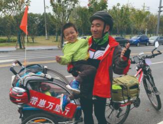 幾個(gè)月前,湖南株洲45歲的羅新華做出一個(gè)很多人難以理解的決定,他要騎自行車帶著三歲半的兒子高高進(jìn)行一次長達(dá)數(shù)千公里的長途騎行。10月2日出發(fā),目前他已騎行1200多公里,途經(jīng)湖南、湖北、江西、安徽,到達(dá)江蘇境內(nèi)。沿途,高高見到了大自然中很多新鮮事物,而羅新華也借這次機(jī)會(huì)第一次與兒子長時(shí)間朝夕相處。