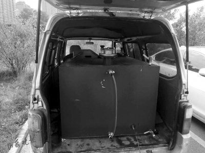 沒有牌照,車頂有監(jiān)控,從來不灑水。一臺(tái)灑水車,看似平平無奇,卻暗藏貓膩。8月10日傍晚,突擊執(zhí)法隊(duì)來到西環(huán)路上一個(gè)物流園區(qū)。在園區(qū)空地,一輛車進(jìn)入眾人視野。該車車身有“灑水車”字樣,但車輛卻沒有牌照,車頂部還裝一個(gè)監(jiān)控?cái)z像頭。在車窗的位置,留有一個(gè)手機(jī)號(hào)碼。執(zhí)法人員打開車底部柜子,發(fā)現(xiàn)這是一臺(tái)用灑水車偽裝的黑加油車。柜子里,加油表盤上面有每升汽油的價(jià)格,車輛啟動(dòng)后,加油槍便可以正常給汽車加注汽油。執(zhí)法人員隨即進(jìn)行了查處,查扣非法油品200升。黑加油車輛由公安交警部門查扣至指定停車場(chǎng)。目前,案件正在進(jìn)一步調(diào)查處理中。