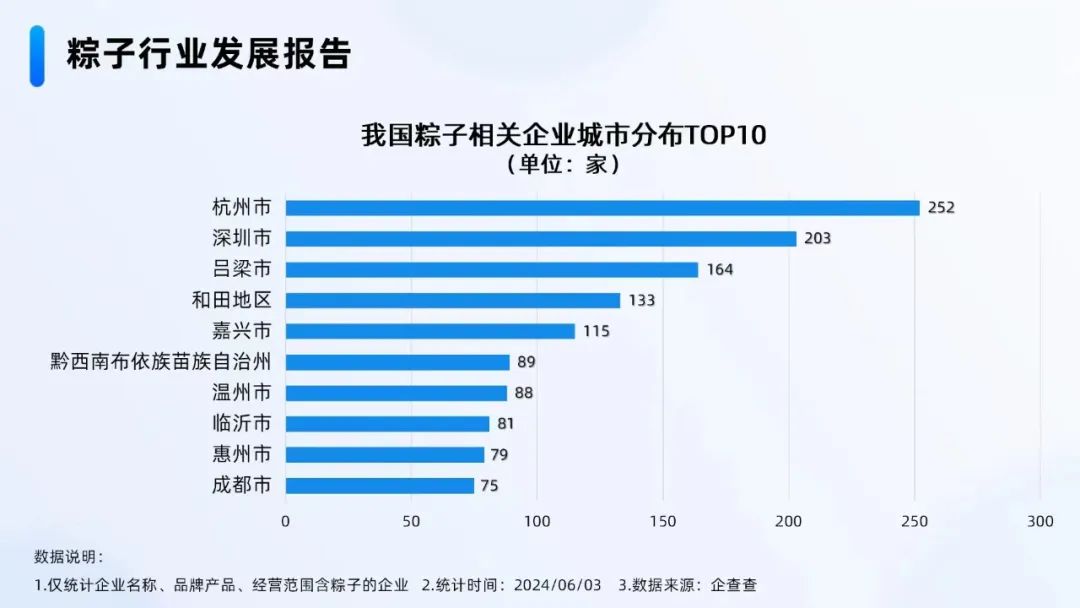 粽子行業(yè)發(fā)展報告中顯示,呂梁市在我國粽子相關(guān)企業(yè)城市分布中,排到了第三名。