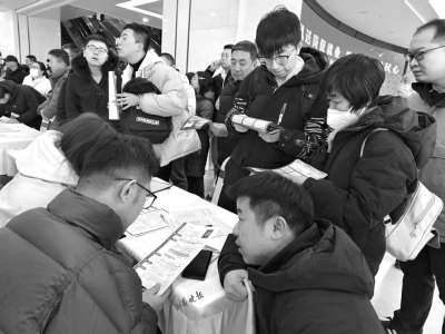 2月5日,正月初八,太原市新春首場(chǎng)大型招聘會(huì)在山西太原人力資源服務(wù)產(chǎn)業(yè)園拉開(kāi)帷幕。上午9時(shí)許,現(xiàn)場(chǎng)的求職者便已經(jīng)比肩接踵,全力奔赴各自心儀的企業(yè)展位?!皪徫欢啵舐氄咭捕?,感覺(jué)比過(guò)年時(shí)逛廟會(huì)還熱鬧?!鼻舐氄呲w先生笑著說(shuō)。
