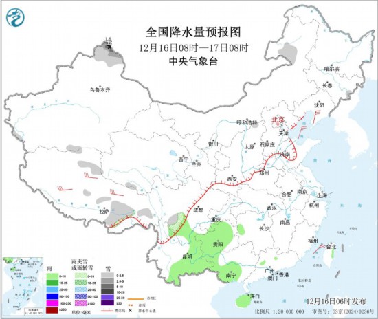 全國降水量預報圖(12月16日08時-17日08時)