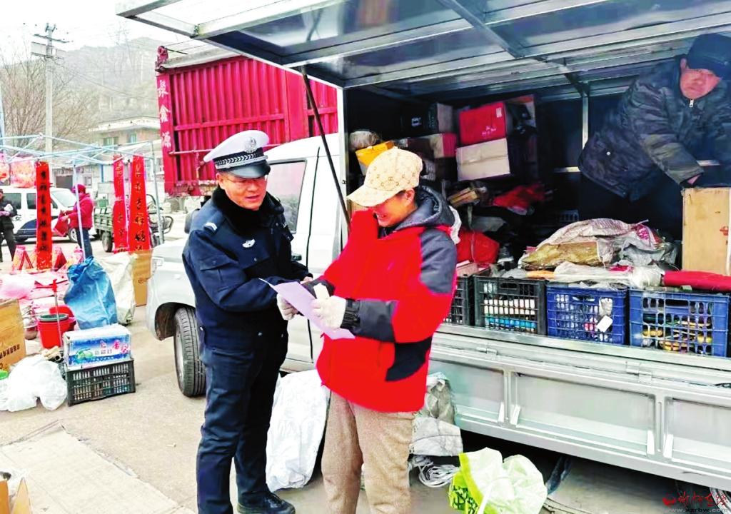 為深入推進(jìn)農(nóng)村交通安全宣傳工作,預(yù)防和減少農(nóng)村道路交通事故的發(fā)生,保德縣交警大隊(duì)宣教股民警以韓家川村趕集活動(dòng)為契機(jī),開展交通安全宣傳。