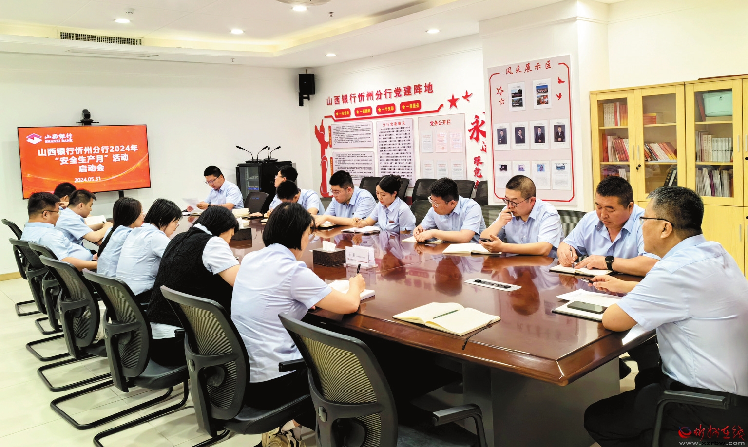 今年6月是第23個(gè)全國(guó)“安全生產(chǎn)月”,主題是“人人講安全、個(gè)個(gè)會(huì)應(yīng)急——暢通生命通道”。為認(rèn)真貫徹落實(shí)上級(jí)部門安全生產(chǎn)工作部署要求,5月31日,山西銀行忻州分行召開“安全生產(chǎn)月”活動(dòng)啟動(dòng)會(huì),要求各責(zé)任主體全面壓實(shí)安全責(zé)任,深入開展安全宣傳,堅(jiān)決守牢安全生產(chǎn)底線。啟動(dòng)會(huì)后,全體參會(huì)人員集中觀看了《安全生產(chǎn) 責(zé)任在肩》警示教育片。(秦浩東攝)