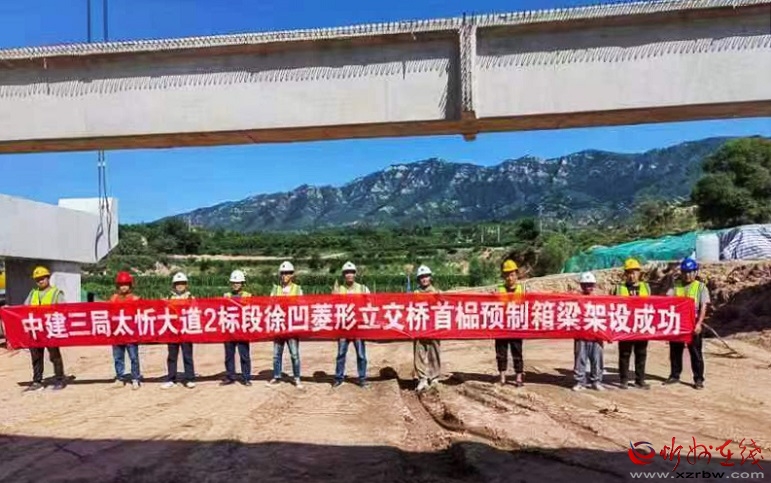 日前,由中建三局集團(tuán)有限公司承建的太忻大道二標(biāo)段徐凹菱形立交橋首片預(yù)制箱梁順利架設(shè)完成,標(biāo)志著太忻大道徐凹菱形立交橋上部結(jié)構(gòu)施工駛?cè)搿翱燔嚨馈薄?/p>