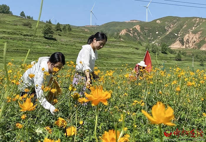孟秋時(shí)節(jié)的汾源大地,仍然是綠意蔥蘢,百花盛開。忻州市寧武縣東馬坊鄉(xiāng)莊旺村金蓮花茶種植基地里,村民們忙著采摘、晾曬、烘干、裝罐、發(fā)運(yùn),一片忙碌景象。