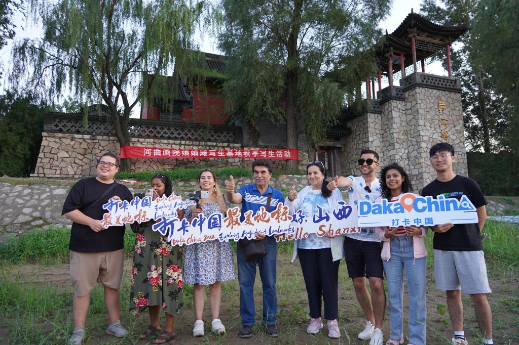 “九曲黃河十八彎,傳奇莫過(guò)娘娘灘?!蹦锬餅?,位于河曲縣城北七公里,處于晉、陜、蒙三省交界黃河中流的一塊綠洲,是萬(wàn)里黃河河床中唯一有人居住的小島,被稱(chēng)為“萬(wàn)里黃河第一島”。外國(guó)網(wǎng)紅博主坐著小船看壯美黃河波瀾壯闊,登上娘娘灘感受小島的歷史人文氣息,與恰逢在這里寫(xiě)生的書(shū)畫(huà)愛(ài)好者交流互動(dòng),這里的山、這里的樹(shù)、這里的空氣,讓外國(guó)友人陶醉其中,不停地拍攝記錄。