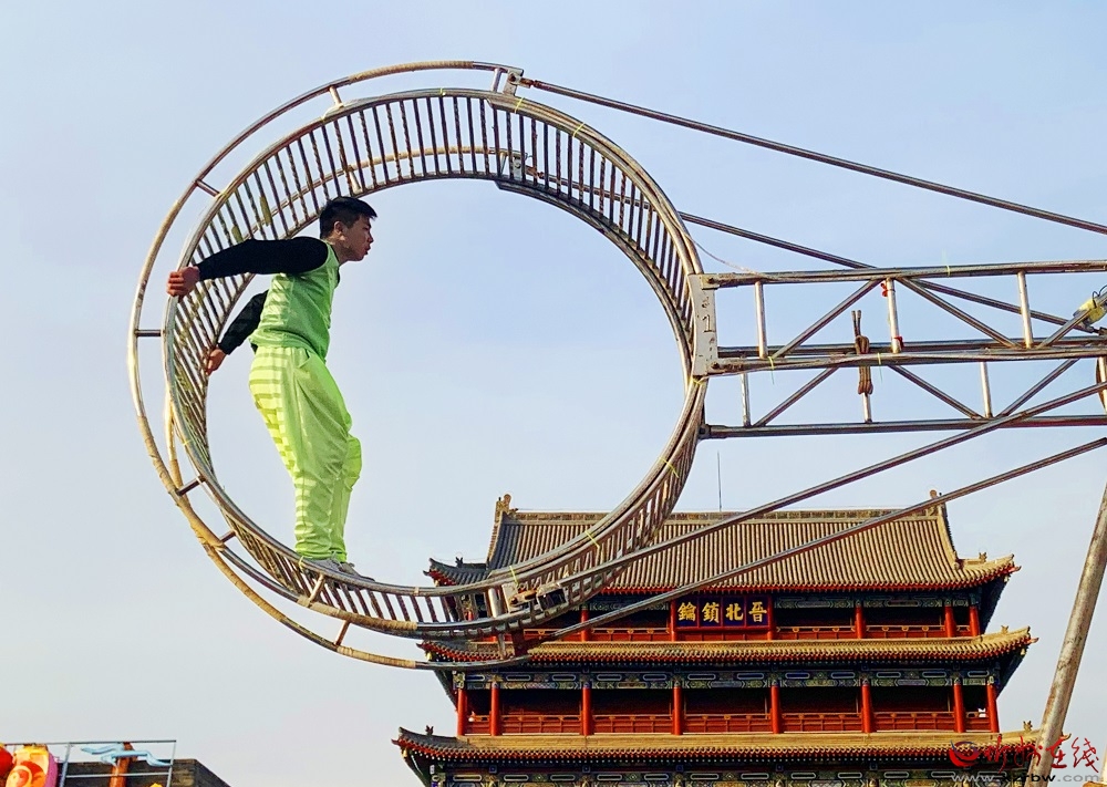 從1月27日到2月5日,在忻州古城北廣場,上演著一場場驚險刺激的高空飛輪表演。8天時間的共需要表演40場,給春節(jié)期間的節(jié)日文化增添了更加熱鬧的氛圍。