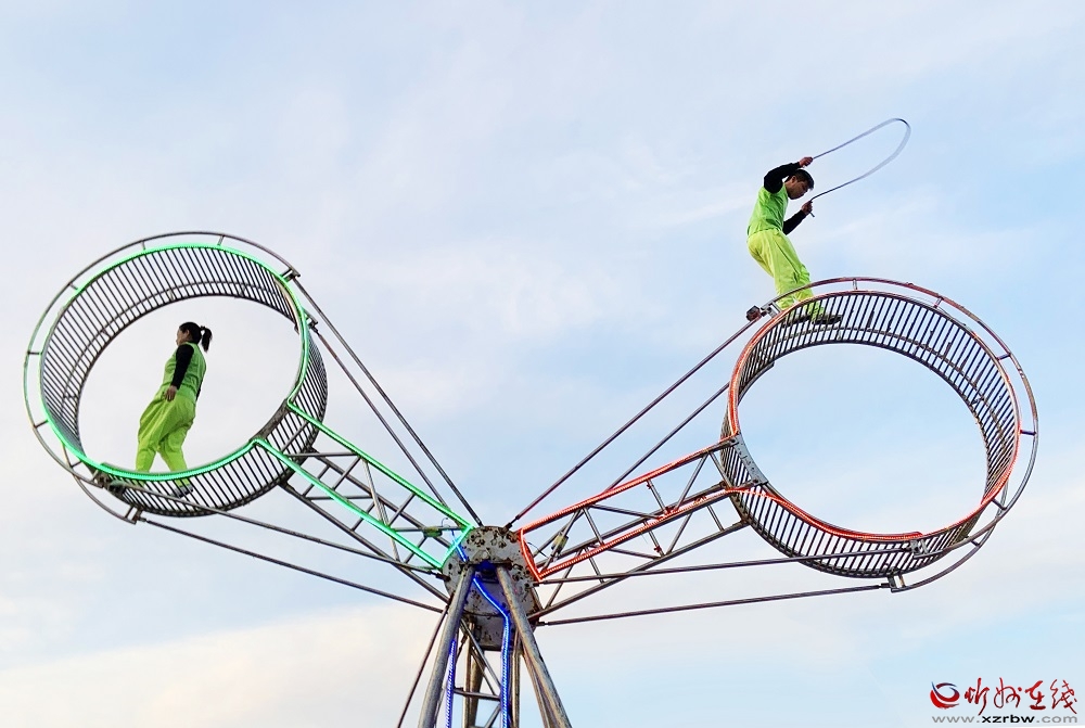 大飛輪等高度的特技表演有著廣闊的舞臺空間,給演員創(chuàng)造出更廣闊的空間來表現(xiàn)張力。這在其他類型的特技表演節(jié)目中沒有,在實際表演中演員更融合了奇、巧、難、危等因素,以此來表現(xiàn)中高空表演的張力,突顯節(jié)目的魅力。幾位演員從容應(yīng)對不出一點失誤,在給觀眾帶來驚奇體驗的同時,也看得出他們在平常的訓(xùn)練中多么的細致入微,讓來忻州古城游覽的人們感受到豐富多彩的文化生活。(范?。?/p>