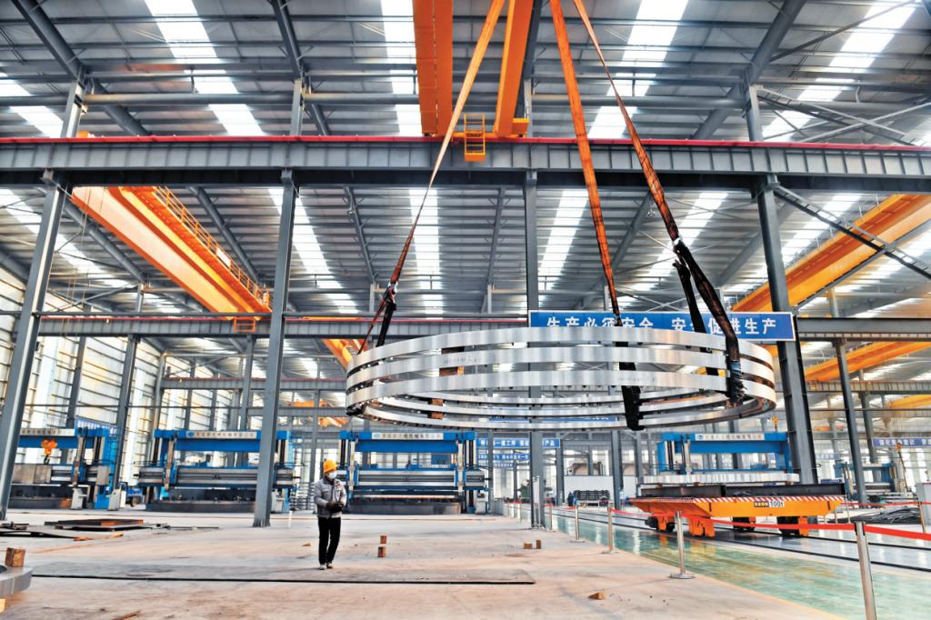 山西寶航重工有限公司車間內(nèi),工人正在吊裝產(chǎn)品。