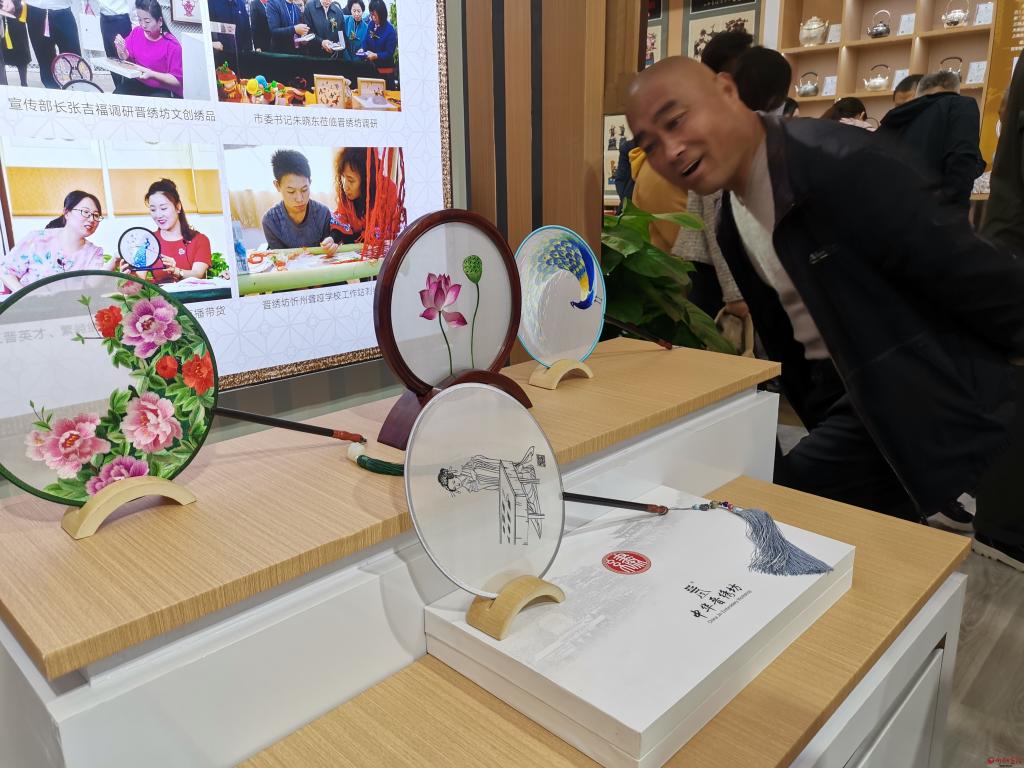 精美的文創(chuàng)繡品讓觀眾嘆為觀止。宮清華 攝