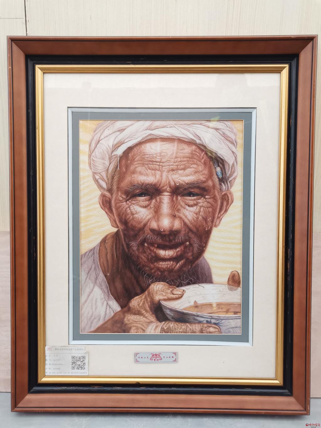 晉繡展品《父親》。以著名油畫為底圖,由晉繡坊非遺傳承人、資深繁峙繡娘歷時八個多月繡制完成。宮清華 攝