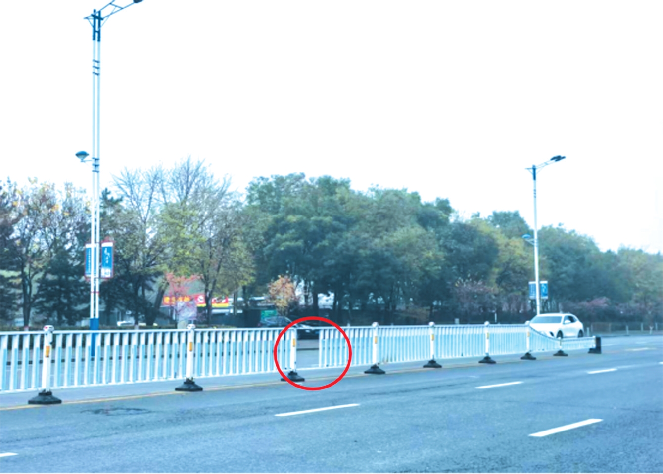 忻府區(qū)云中北路與汾源東街交叉口附近欄桿破損