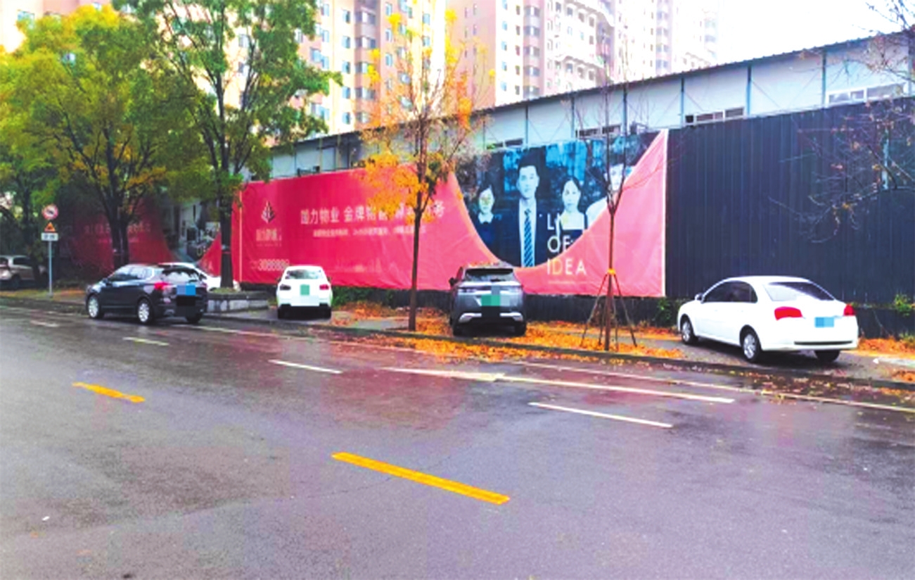 忻府區(qū)?;勐穱?guó)力新城三期東側(cè)車輛占用人行通道。