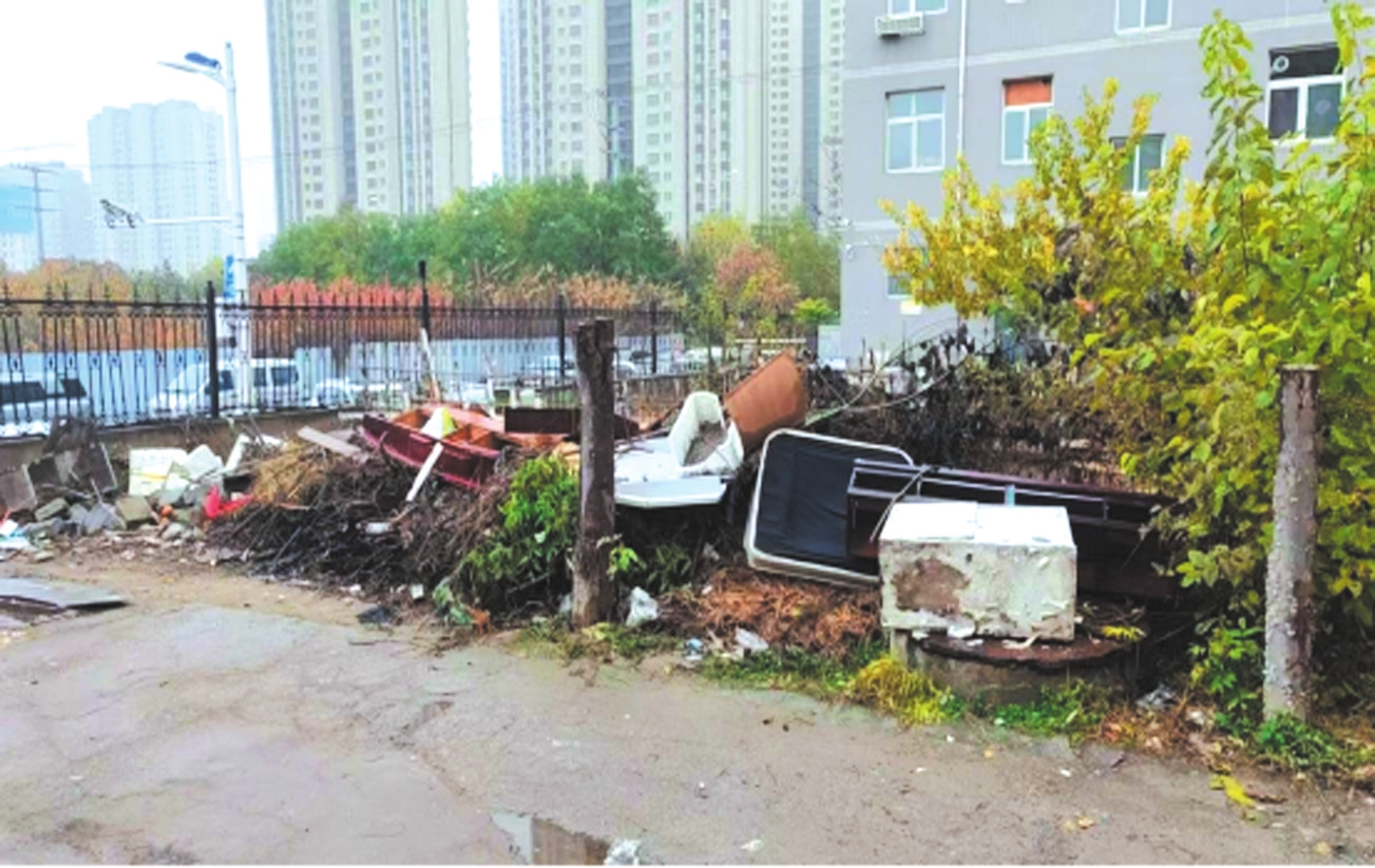 忻府區(qū)九原西街惠民小區(qū)19號(hào)樓東北側(cè)存在垃圾亂堆放現(xiàn)象。