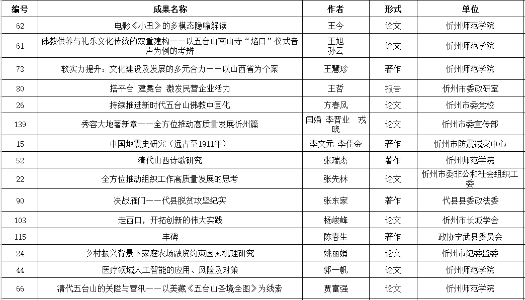 忻州市社會(huì)科學(xué)研究?jī)?yōu)秀成果一等獎(jiǎng)獲獎(jiǎng)名單(共15項(xiàng))(按姓氏筆畫排序)