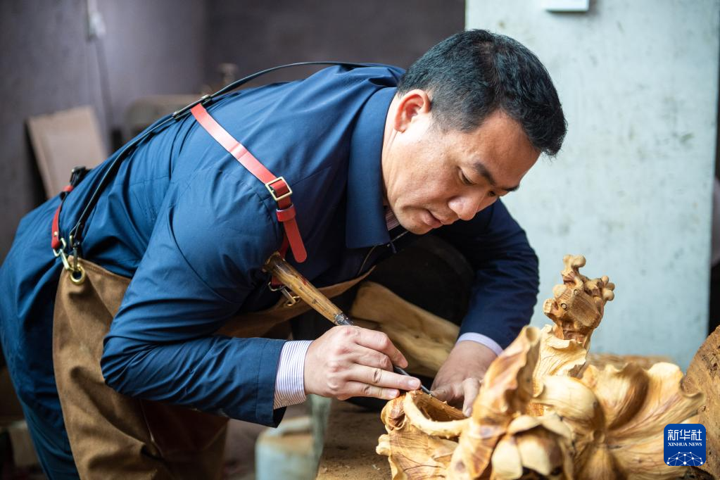 洞口木雕已被正式列入湖南省省級非物質文化遺產名錄,木雕產品遠銷70多個國家和地區(qū)。新華社記者 陳思汗 攝