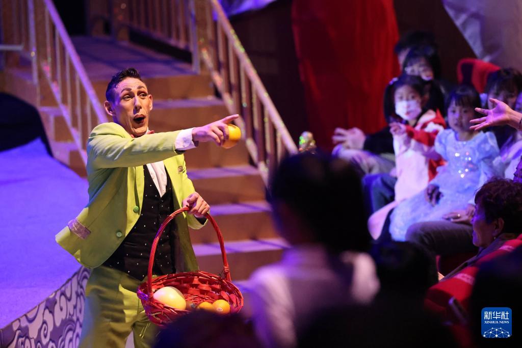 10月28日,演員在河北省滄州市吳橋縣吳橋雜技大世界景區(qū)江湖大劇院與觀眾互動(dòng)。