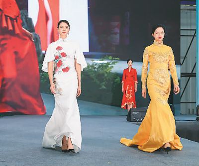 2023年9月,在安徽合肥舉辦的文化貿(mào)易投融資博覽會上,“徽幫裁縫·時光典藏非遺華服秀”正在展演。袁兵攝(人民圖片)