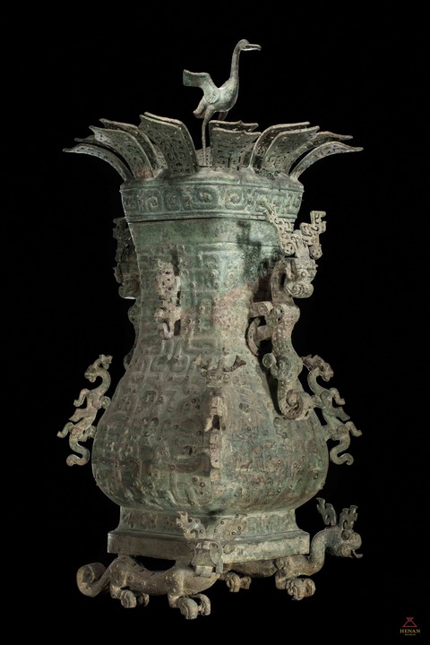 郭沫若最終將其定名為蓮鶴方壺,這對(duì)青銅時(shí)代承上啟下的絕代珍品,被列入首批禁止出國(guó)(境)展覽文物名單的“國(guó)之重器”,現(xiàn)分別藏于河南博物院和北京故宮博物院。